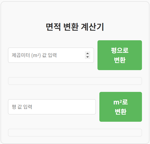 1. 값 입력: 변환하고자 하는 면적을 '평' 또는 '제곱미터' 입력란에 입력