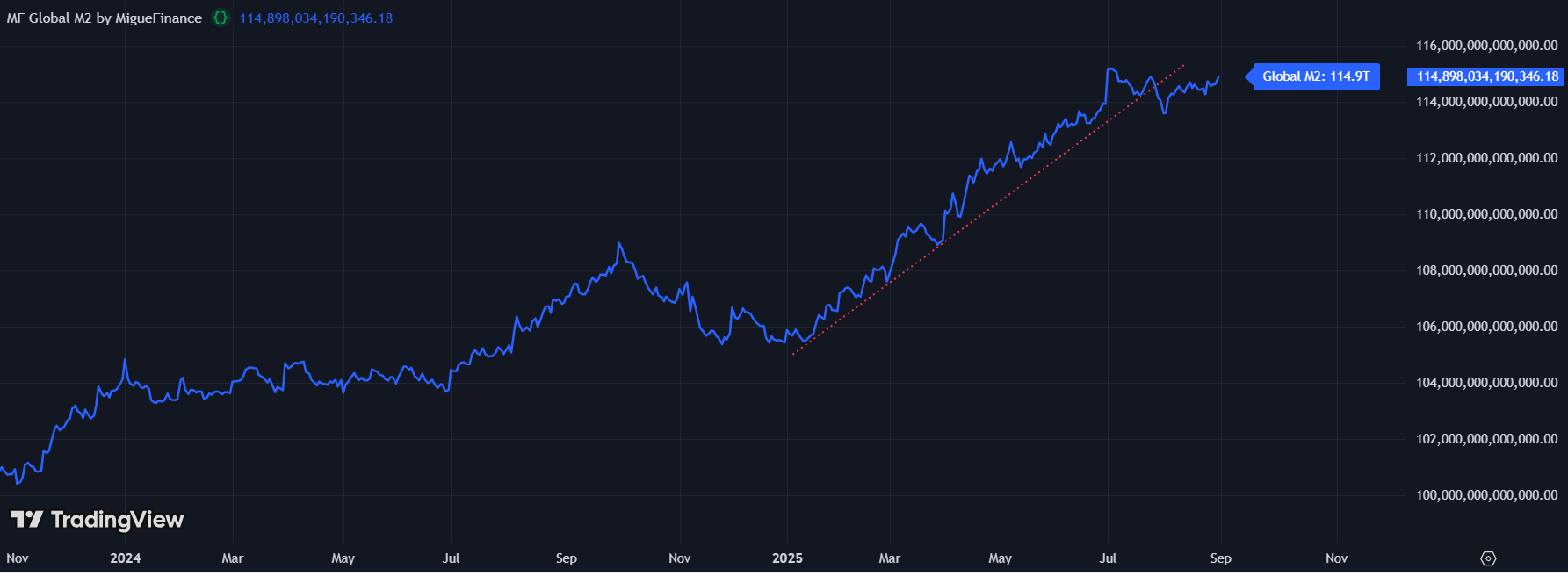 ✅ Global M2: 22.02조 달러 사상 최고치로 유동성 확대 압력 증가
