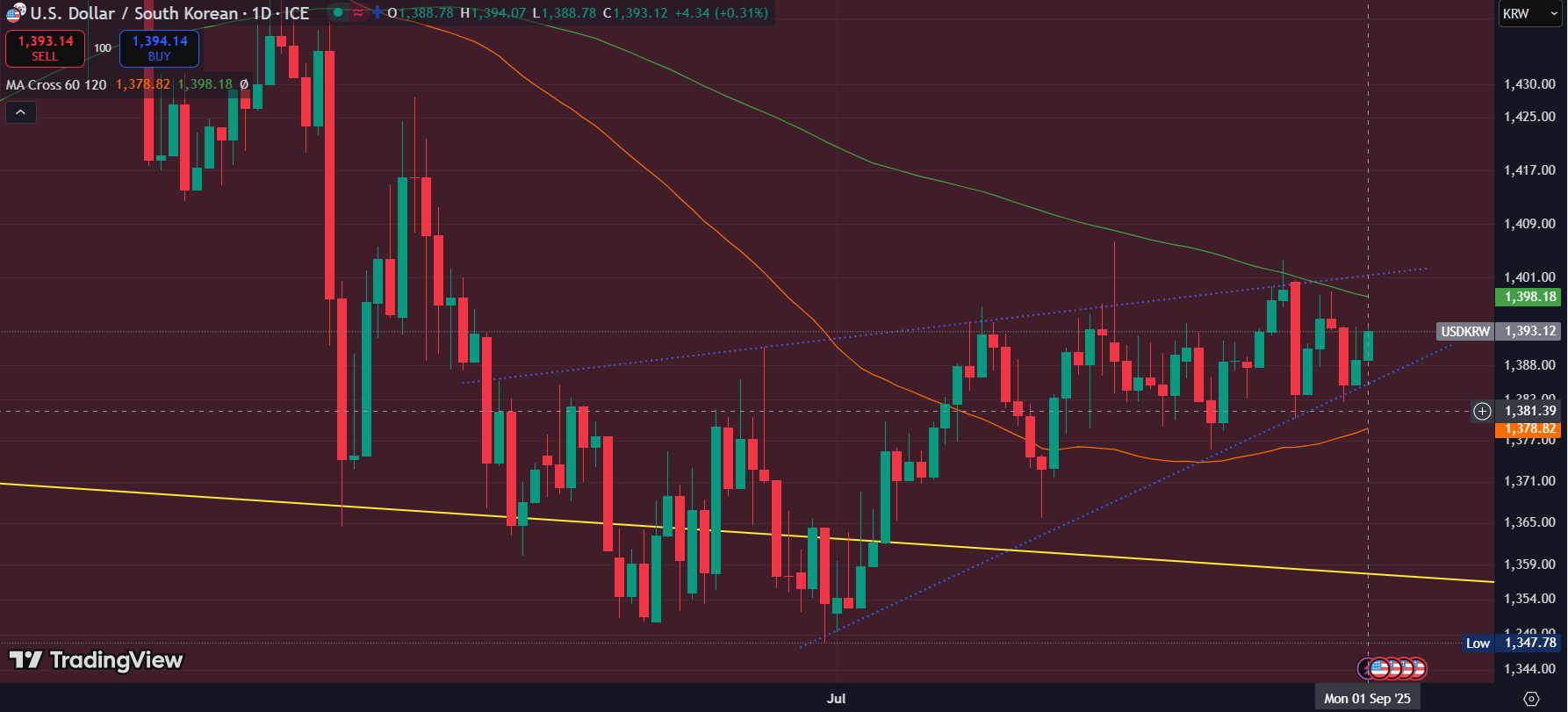 시장 현황: 1,380-1,400원 박스권에서 변동성 구간. 달러 약세 시 1,370원대 진입 가능하나 국내 악재로 하방 제한